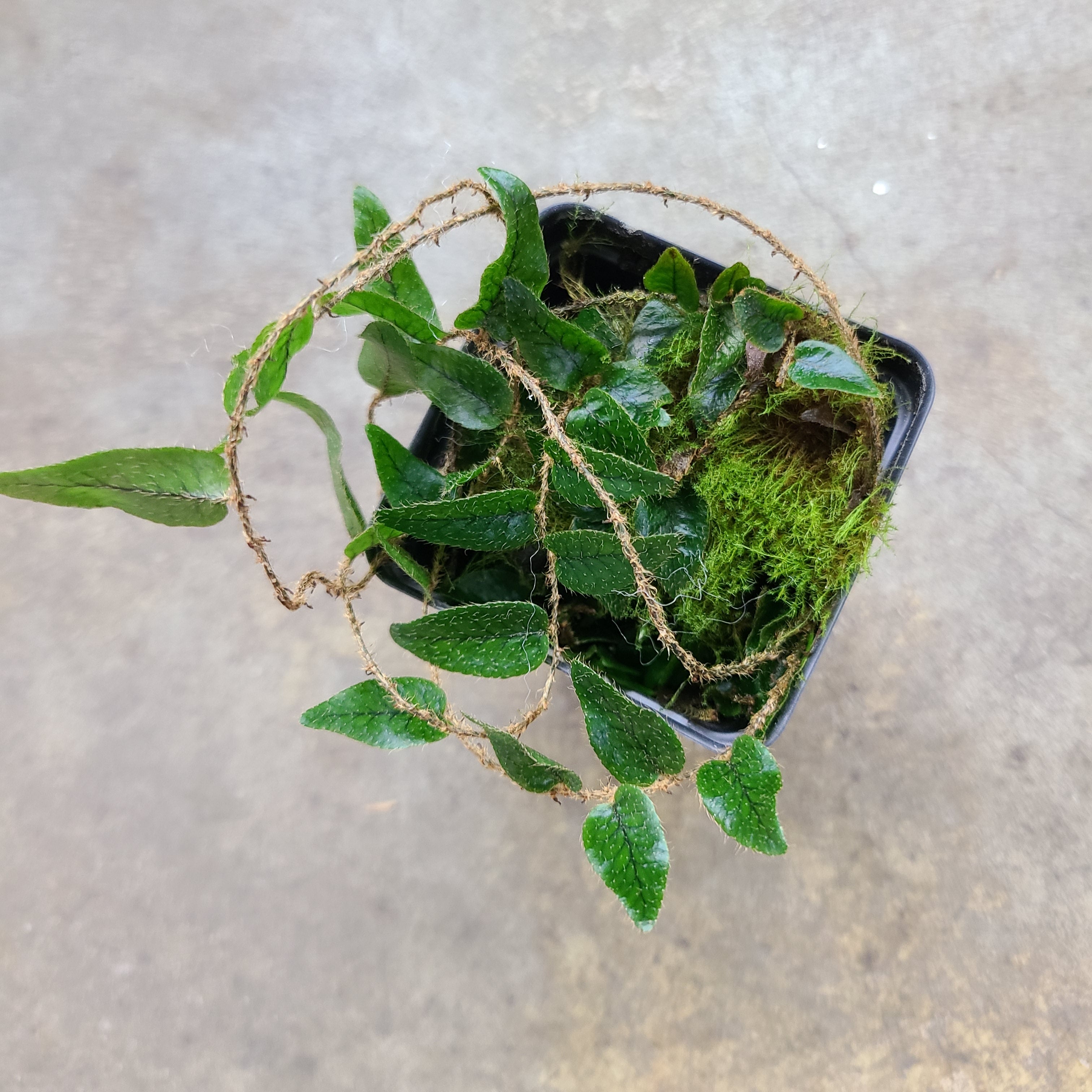 Microgramma aff reptans is a pubscent micro fern. It is native to Ecuador. It has flat, thin green fronds and spreads via a creeping rhizome. This plant does well epiphityically and and a ground sprawler. Like other micro ferns (microferns), it is slow to grow. It does well in moderate, indirect light and high humidity. Moist soil and moist but not wet sphagnum moss are helpful for rooting this species.