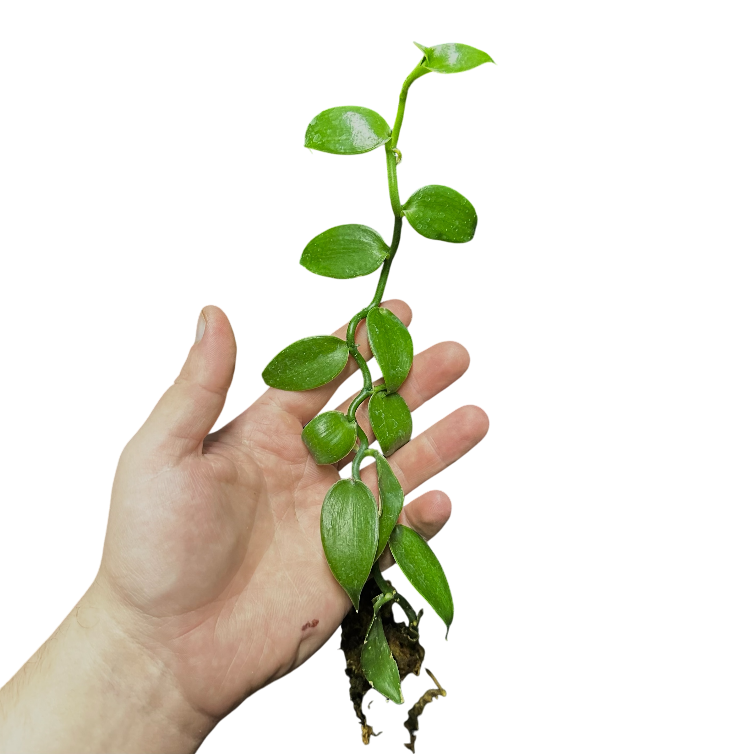 This orchid species is native to Central America, Mexico, Columbia, and Brazil. It has beautiful thick leaves and of course could produce edible Vanilla! It enjoys medium to high light. It is somewhat easy to propagate in sphagnum moss or Fluvial stratum.