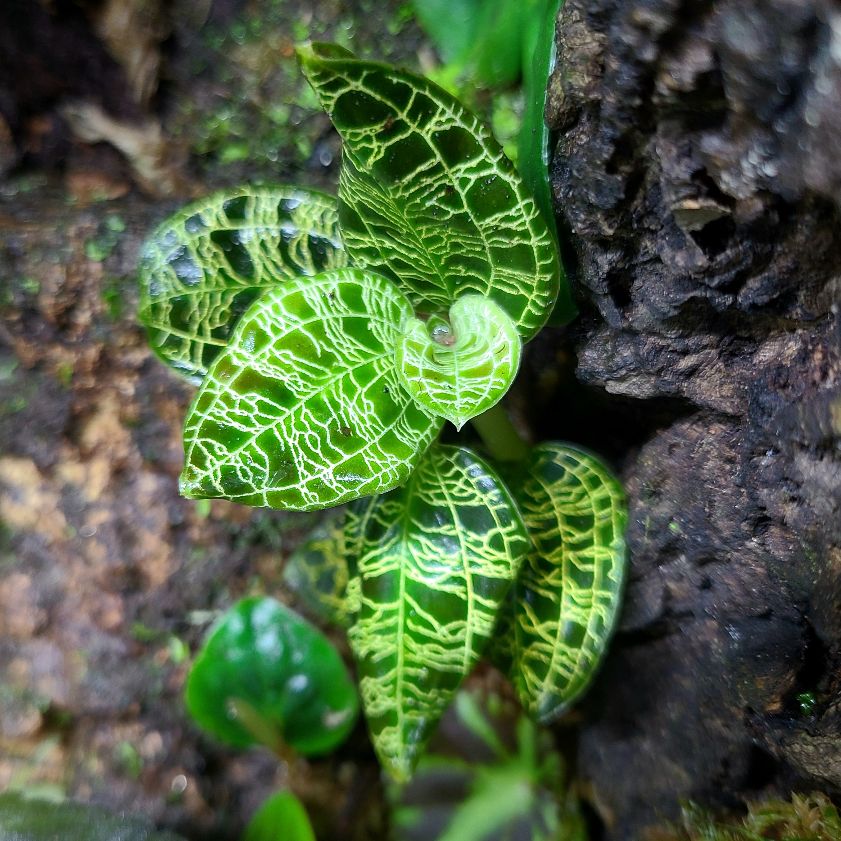 This jewel orchid species is native to SE Asia, including Malaysia, Philippines, New Guinea, and Sumatra. It has absolutely foliage that is one of a kind; taking resemblance of lightning bolts. It enjoys medium light and does not like standing water on its leaves. It is somewhat easy to propagate in sphagnum moss or Fluvial stratum.