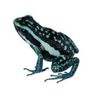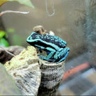 Ameerega bassleri are found in Peru. These frogs are very beautiful and are dark blue to black with turquoise lines. They have very bumpy skin. These frogs are moderately shy to bold depending on age, and can do moderately well in groups, provided that the enclosure is large enough. It is recommended that no more than 2 go into a 10 gallon tank, 3 in a 20 gallon tank, and 4-5 in a 40 gallon tank. There can be some aggression and wrestling, but it is usually minor. Females will generally lay 10 to 20 eggs under leaf litter, on foliage, or under a coconut hut with flat leaves or a petri dish underneath. The frogs will transport tadpoles if left alone. Additional information can be found, of course, through our complimentary Encyclopedia Database: DendroKnow Project.