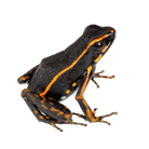Ameerega trivittata Orange are found in Suriname. These frogs are very beautiful and have reddish orange, granulated skin across a black background. These frogs are moderately shy to bold depending on age, and can do moderately well in groups, provided that the enclosure is large enough. It is recommended that no more than 2 go into a 10 gallon tank, 3 in a 20 gallon tank, and 4-5 in a 40 gallon tank. There can be some aggression and wrestling, but it is usually minor. Females will generally lay 10 to 20 eggs under leaf litter, on foliage, or under a coconut hut with flat leaves or a petri dish underneath. The frogs will transport tadpoles if left alone. Additional information can be found, of course, through our complimentary Encyclopedia Database: DendroKnow Project.