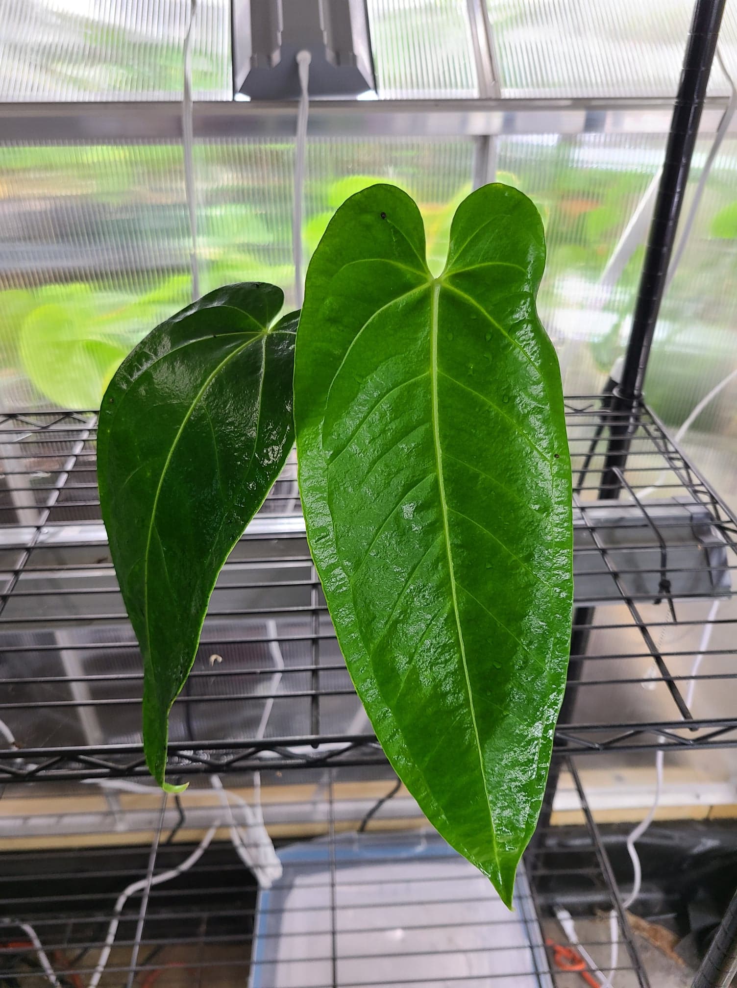 Anthurium warocqueanum x waterburyanum is a beautiful hybrid species with leaves up to 3 feet long if grown in optimal conditions. Vivarium conditions are fantastic for this plant, but of course, it will not reach its full potential. It does well in moderate, indirect light and high humidity.