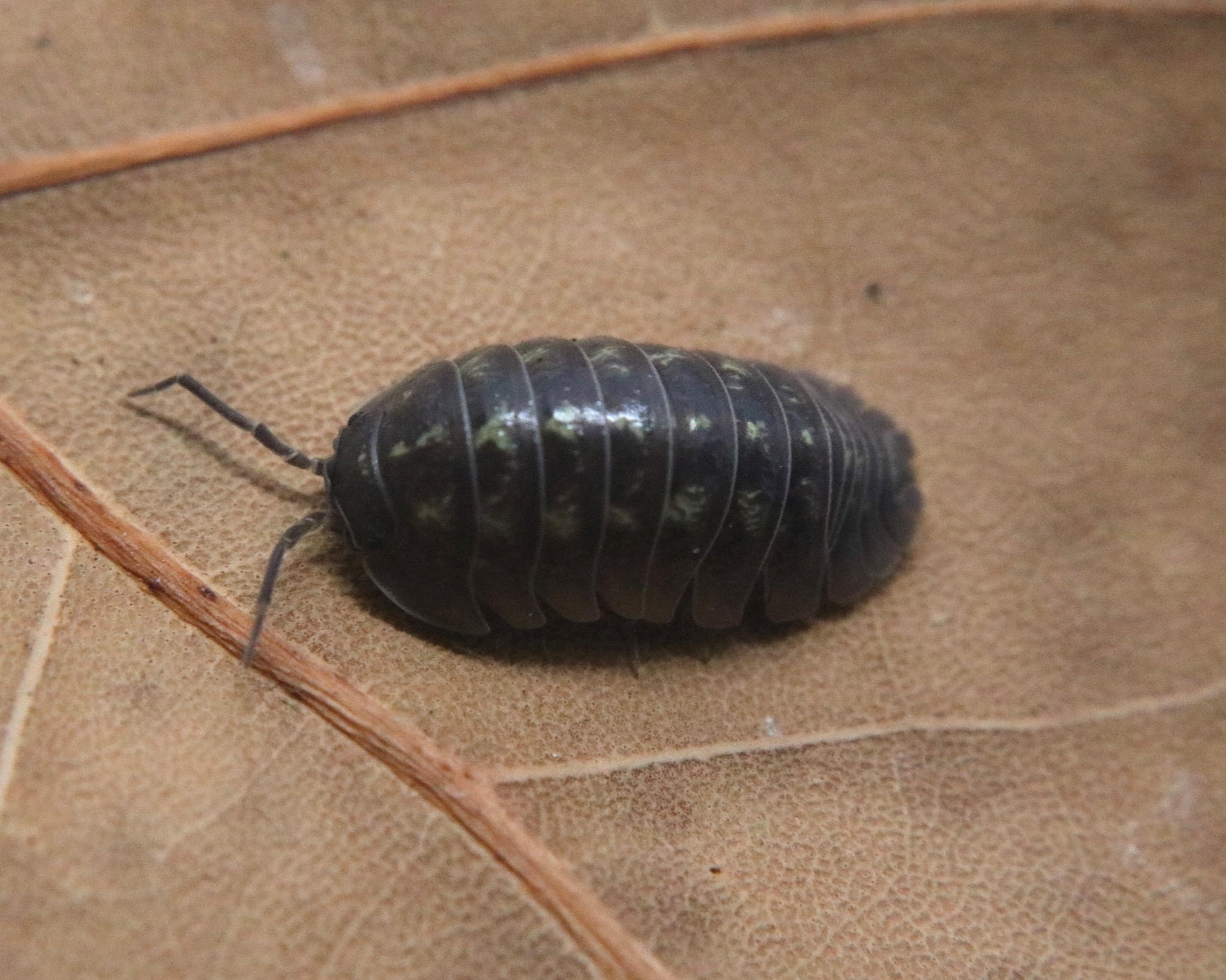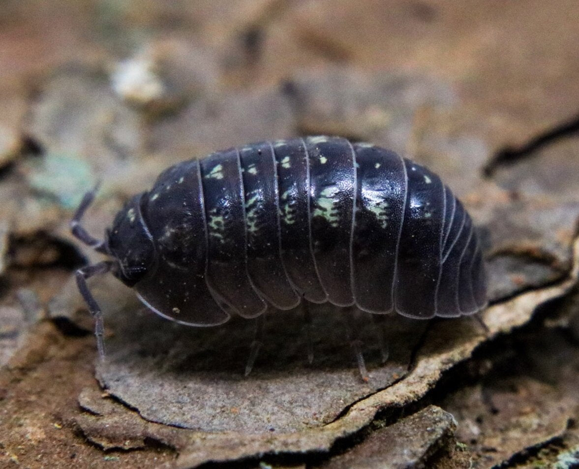 Armadillidium depressum establish moderately quickly in a vivarium, and will act as janitors to keep the vivarium clean, as well as a snack that provides a natural calcium boost. They are native to Britain. These Isopods have faded yellow spots on their back most of the time, but can also be completely grey. They are quite large as adults, but the younger ones are palatable and are eaten by amphibians, invertebrates, and reptiles. Larger amphibians and reptiles will consume adults as well, but not poison dart frogs. Our isopods are fed Iso-licious Isopod Food 1-2x a week, including our new wet mixes, supplemented with potatoes, squash, carrots, our leaf powder, and a cuttlebone. These isopods enjoy warm temperatures and an occasional misting, but do not do as well in an extremely wet environment. We allow space for a moderate moisture gradient, starting with one side of the enclosure having wet NZ sphagnum moss, the middle being moist and mostly covered with leaf litter and bark, and onto the opposite side being completely dry and covered only with leaf litter. This provides the needed space for isopods to osmoregulate to remain in homeostasis.