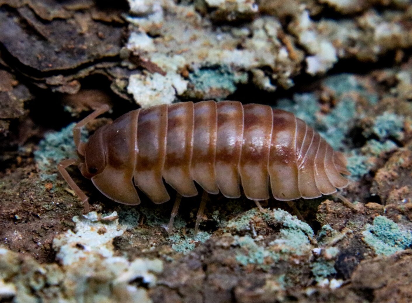 Armadillidium nasatum “Peach” Isopods establish moderately quickly in a vivarium, and will act as janitors to keep the vivarium clean, as well as a snack that provides a natural calcium boost. They are peach in color. They are native to the North America. These isopods have a hard, calcified body. They are moderately sized as adults, but the younger ones are palatable and are eaten by amphibians, invertebrates, and reptiles. Larger amphibians and reptiles will consume adults as well, but not poison dart frogs. Our isopods are fed Iso-licious Isopod Food 1-2x a week, including our new wet mixes, supplemented with potatoes, squash, carrots, our leaf powder, and a cuttlebone. These isopods enjoy warm temperatures and an occasional misting, but do not do as well in an extremely wet environment. We allow space for a moderate moisture gradient, starting with one side of the enclosure having wet NZ sphagnum moss, the middle being moist and mostly covered with leaf litter and bark, and onto the opposite side being completely dry and covered only with leaf litter. This provides the needed space for Isopods to osmoregulate to remain in homeostasis.