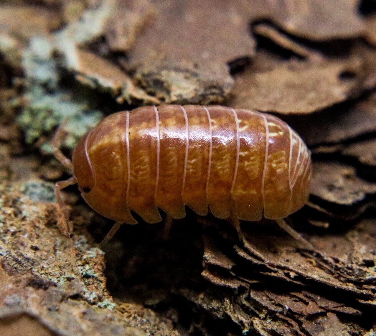 Armadillidium vulgare "Saint Lucia" establish moderately in a vivarium, and will act as janitors to keep the vivarium clean, as well as a snack that provides a natural calcium boost. These isopods are absolutely stunning and are light to deep orange, grey, and a multitude of other colors. These are native to Saint Lucia. They are moderately large as adults, but the younger ones are palatable and are eaten by amphibians, invertebrates, and reptiles. Larger amphibians and reptiles will consume adults as well, but not poison dart frogs. Our isopods are fed Iso-licious Isopod Food 1-2x a week, including our new wet mixes, supplemented with potatoes, squash, carrots, our leaf powder, and a cuttlebone. These isopods enjoy warm temperatures and an occasional misting, but do not do as well in an extremely wet environment. We allow space for a moderate moisture gradient, starting with one side of the enclosure having wet NZ sphagnum moss, the middle being moist and mostly covered with leaf litter and bark, and onto the opposite side being completely dry and covered only with leaf litter. This provides the needed space for Isopods to osmoregulate to remain in homeostasis.