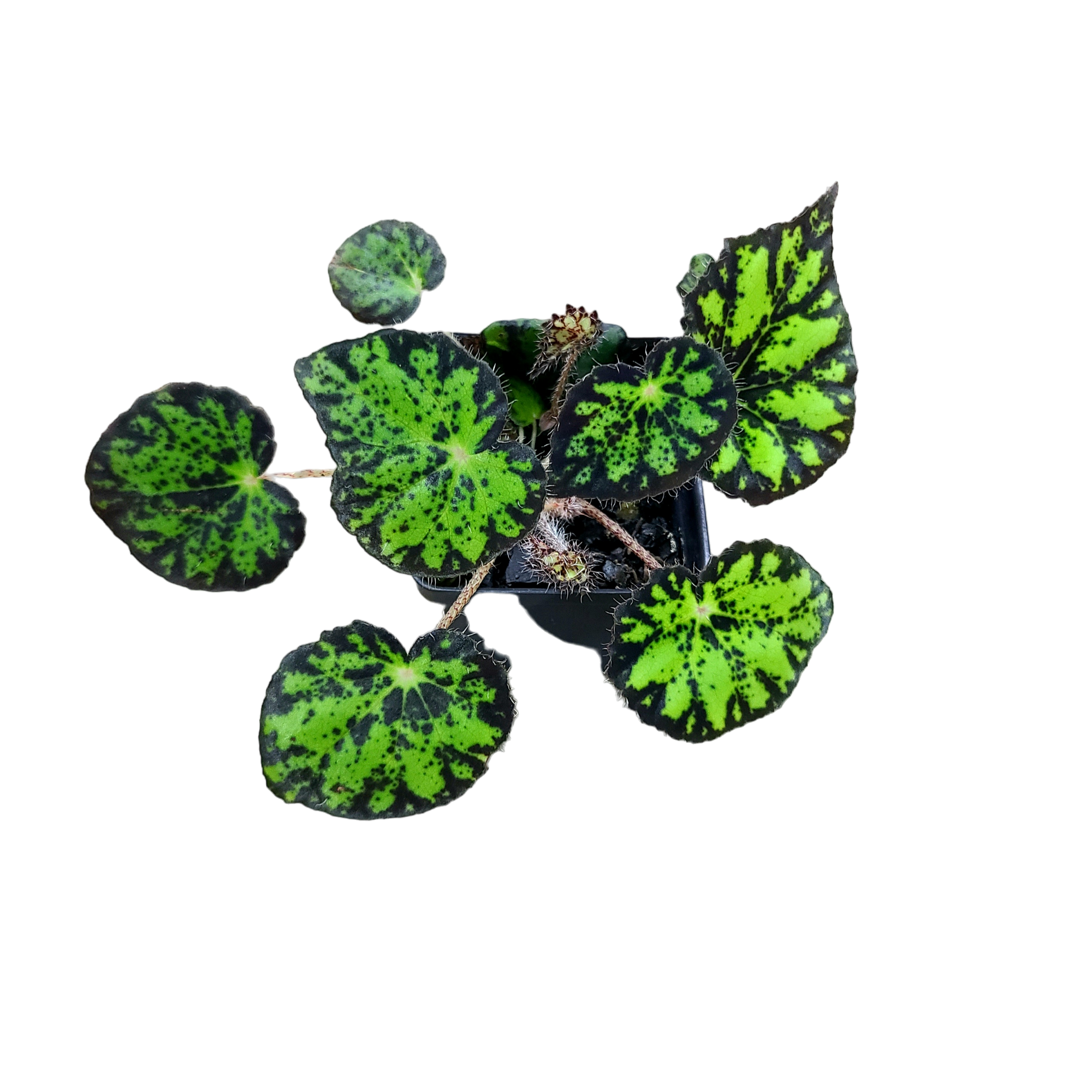 Begonia “Persian Brocade” is a moderately growing species with stunning leaves that contrast bright green with a dark blue frill. It does well in bright, indirect light and moderate to high humidity. It prefers some airflow, but does not require it. Moist soil and sphagnum moss are helpful for rooting this species. It is a larger Begonia, and will grow to an impressive size.