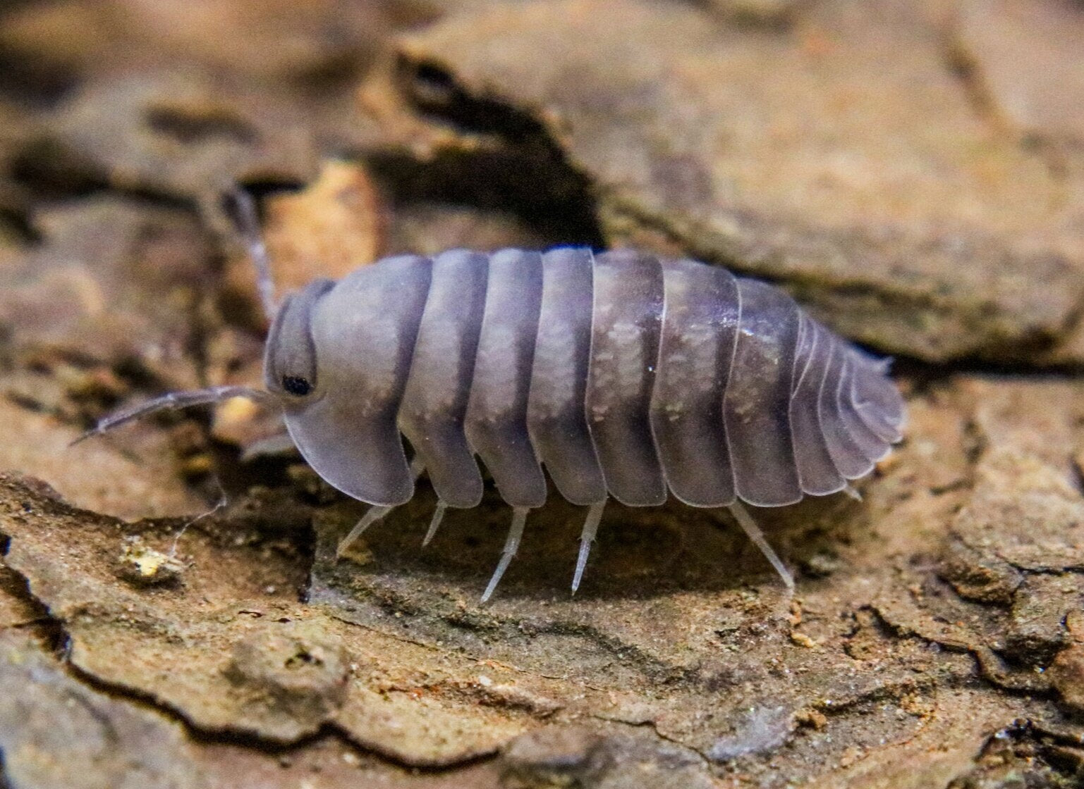 Cubaris sp. "Blue Pidgeon” Isopods are rare Isopods. These Isopods are white to a periwinkle blue in color. Our isopods are fed Iso-licious Isopod Food 1-2x a week, including our new wet mixes, supplemented with potatoes, squash, carrots, our leaf powder, and a cuttlebone. These isopods enjoy warm temperatures and a mostly damp environment with calcium lime mixed into the substrate. We provide fresh moss and a variety of foods for them.