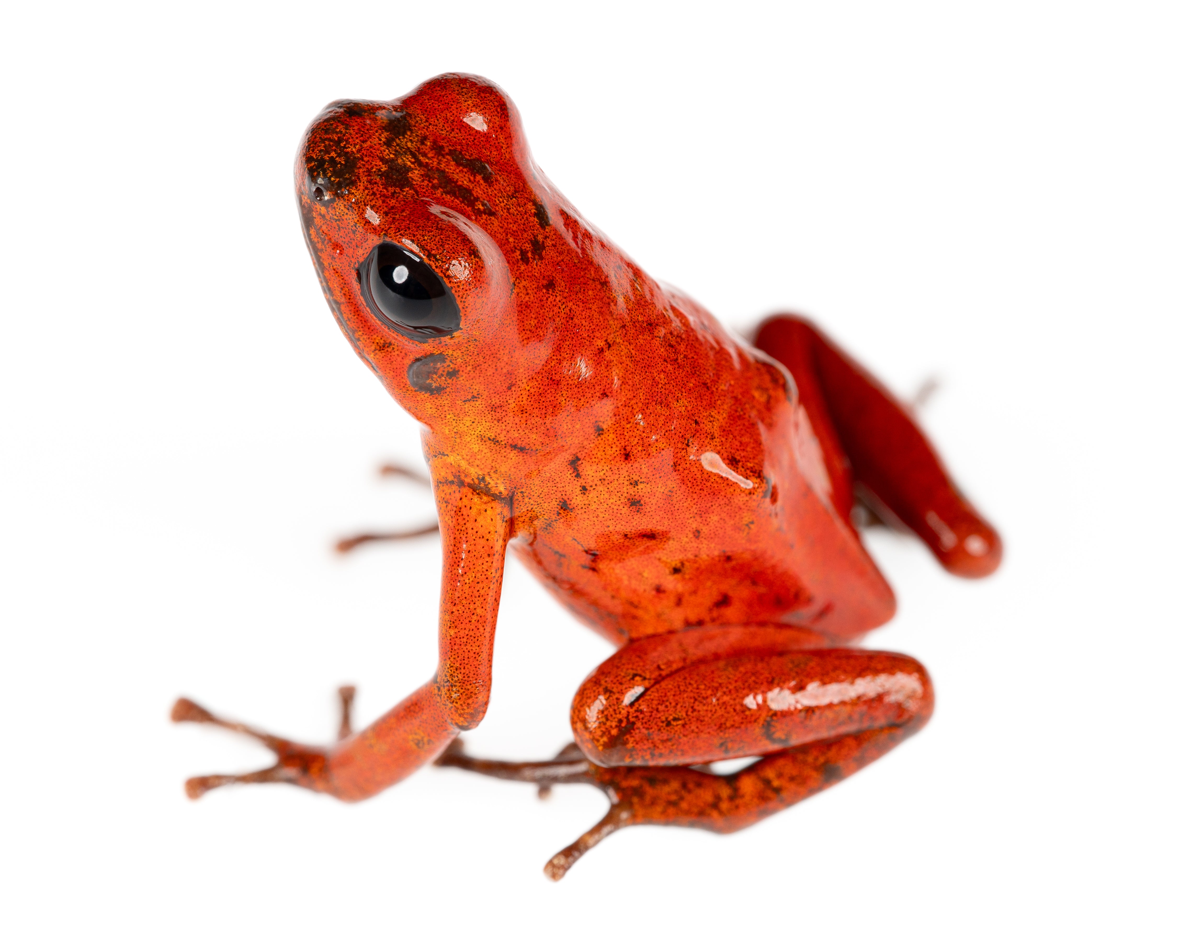 Oophaga pumilio "Changuinola" are from Panama. They are usually bright red to orange in color. They do fine in small groups, but do best as a pair or trio when sexual maturity is reached. The males often have control of 1 to 5 square meters of territory in the wild, so rival males may display aggression for supremacy. They usually lay 3 to 10 eggs on glossy leaves, on glass, or sometimes in leaf litter. Tadpoles must be raised by adults because they feed on infertile eggs from the female. These dart frogs are interesting to many hobbyists because they exhibit biparental care. No more than a trio should go in a 20 gallon vertical conversion tank or a 18 x 24 Exo-terra enclosure. Additional information can be found, of course, through our complimentary Encyclopedia Database: DendroKnow Project.