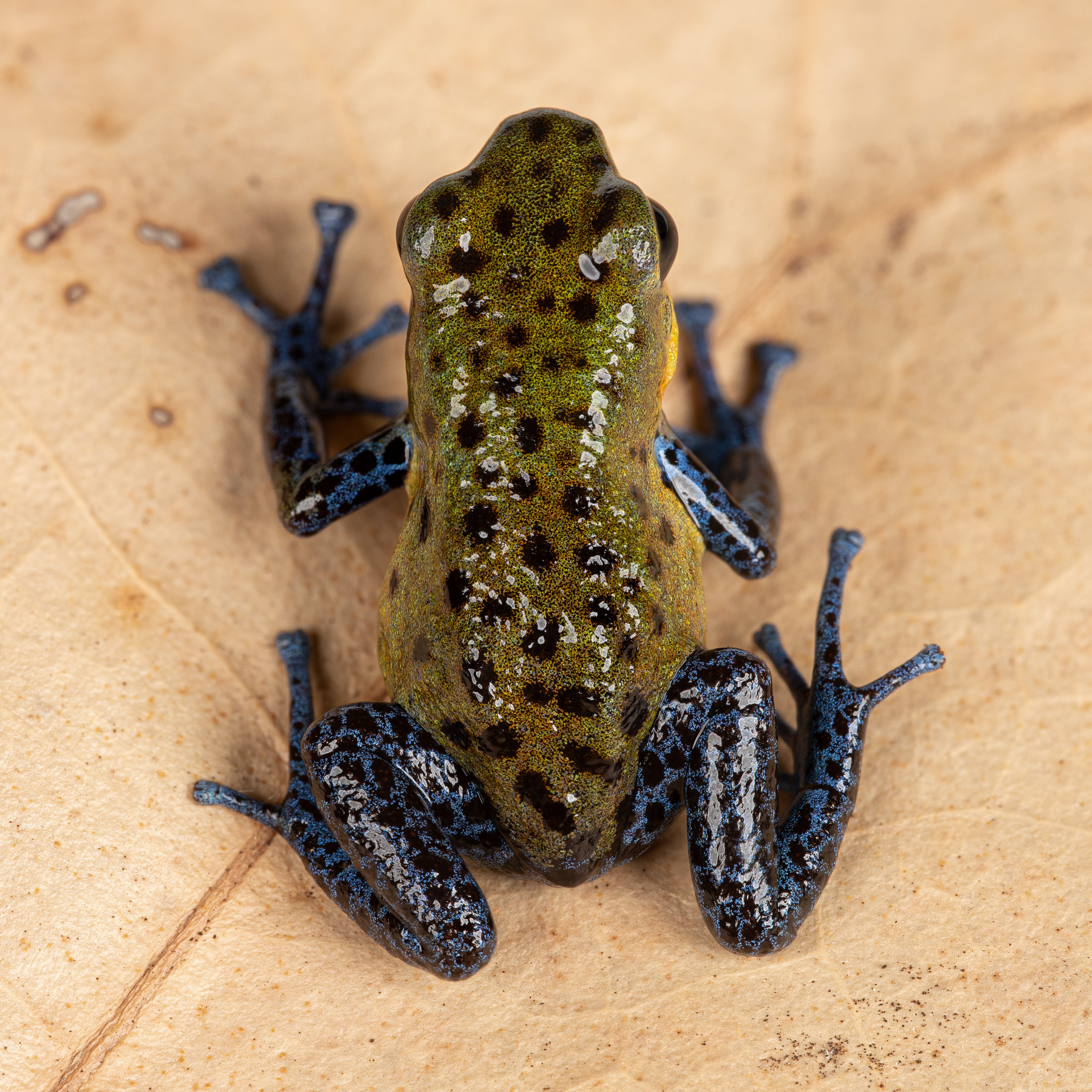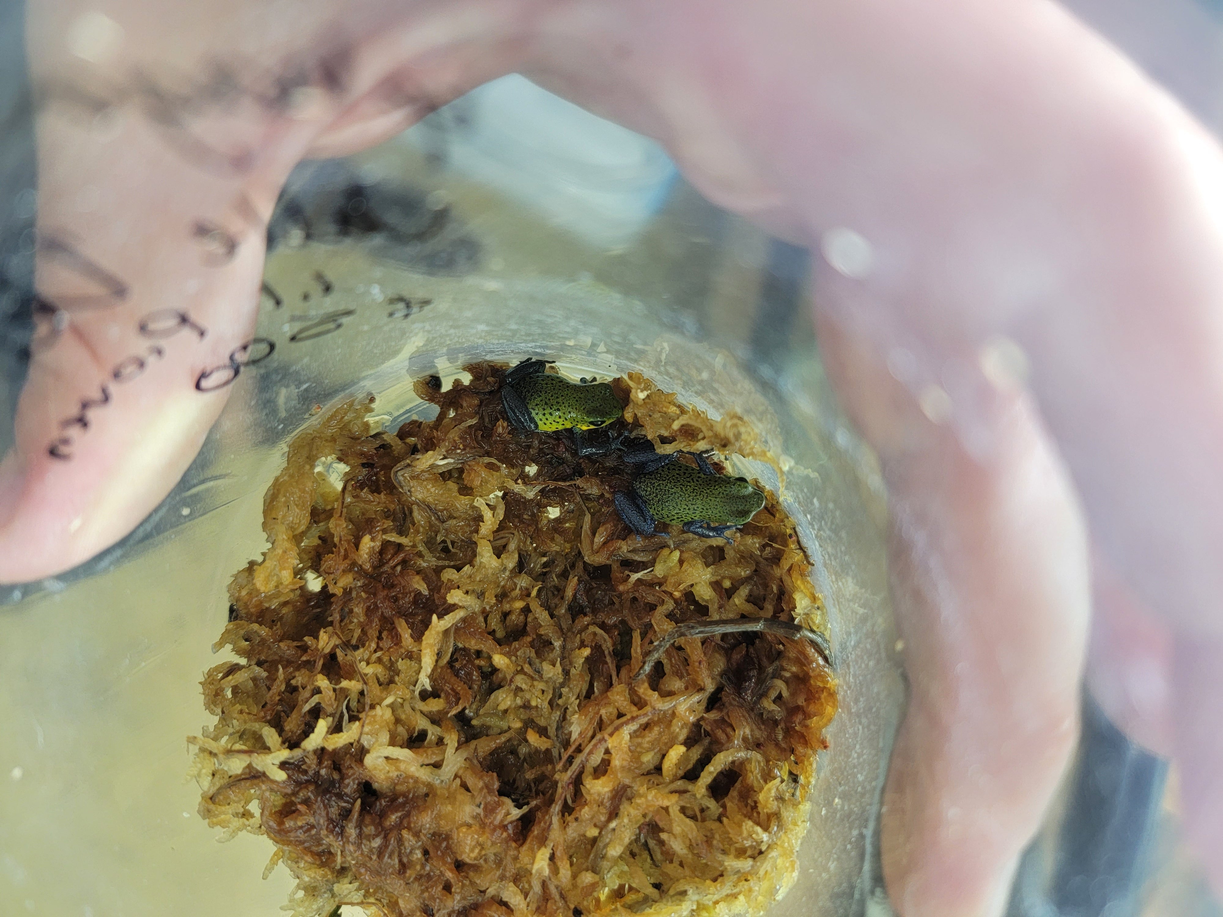 Oophaga pumilio "Valle Del Rey" are beautiful dart frogs that have moderate phenotypic variation. They do fine in small groups, but do best as a pair or trio when sexual maturity is reached. The males often have control of 1 to 5 square meters of territory in the wild, so rival males may display aggression for supremacy. They usually lay 3 to 10 eggs on glossy leaves, on glass, or sometimes in leaf litter. Tadpoles must be raised by adults because they feed on infertile eggs from the female. These dart frogs are interesting to many hobbyists because they exhibit biparental care. No more than a trio should go in a 20 gallon vertical conversion tank or a 18 x 24 Exo-terra enclosure. Additional information can be found, of course, through our complimentary Encyclopedia Database: DendroKnow Project.