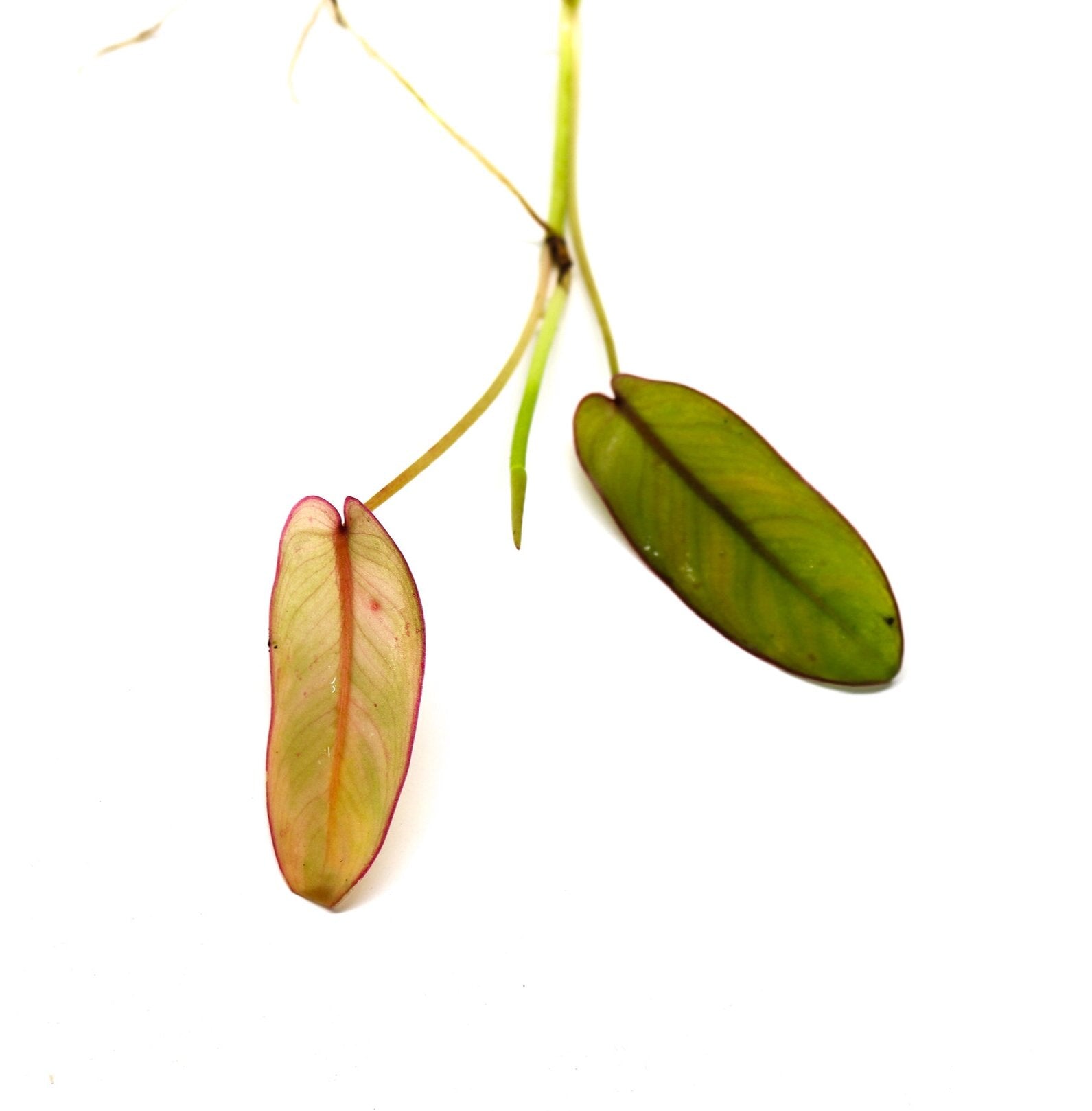 Philodendron recurvifolium is a Philodendron native to southern Brazil. It has an amazing red edge around a gorgeous green leaf. Most of the time it is a deep green. It is a moderately fast growing species. It does well in moderate, indirect light and moderate to high humidity, and appreciates airflow. Moist sphagnum moss is helpful for rooting this species.
