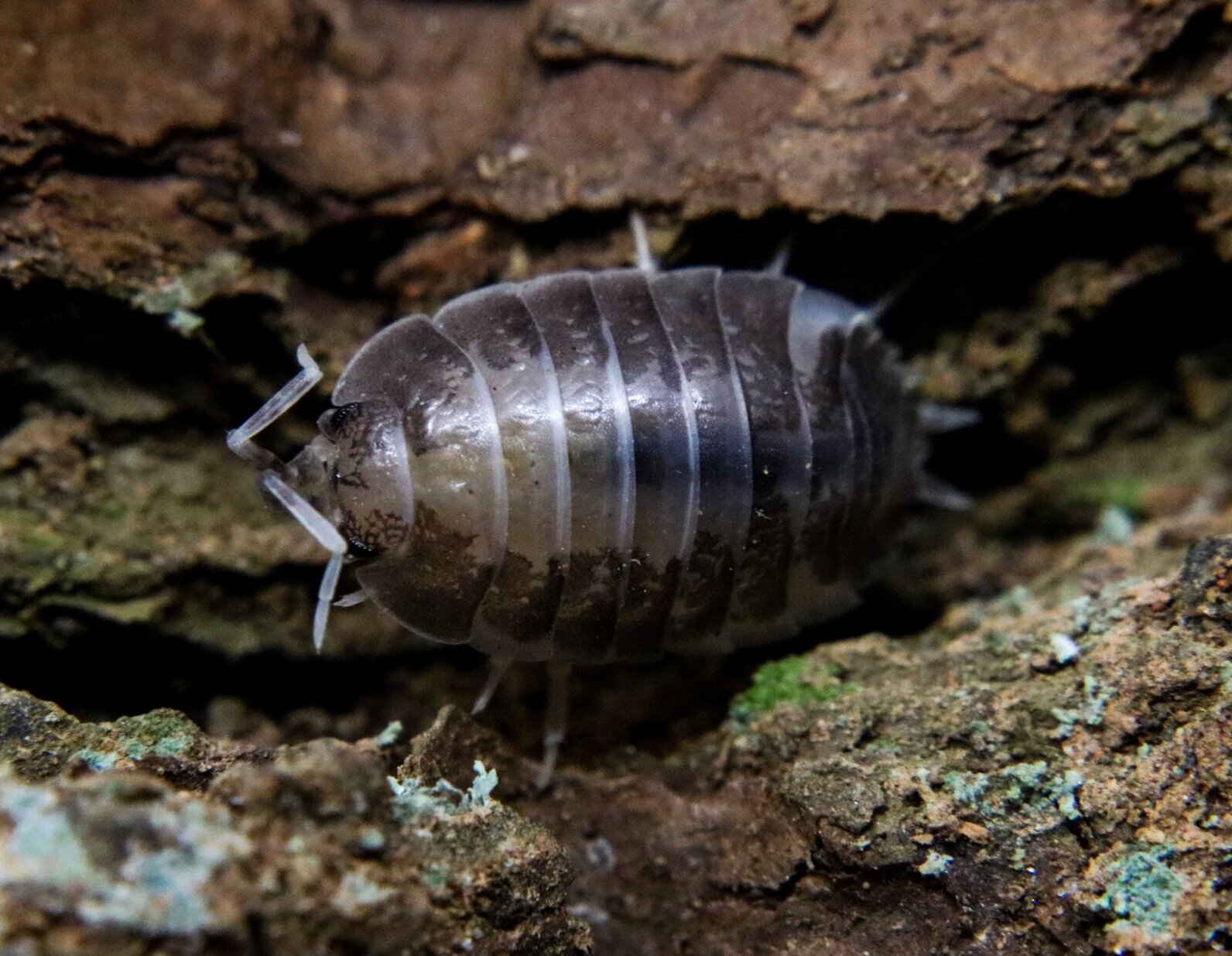 Porcellio laevis "Milk Back" are a very cool laevis to work with. We do not recommend adding laevis into enclosures with soft-bodied, small, or young animals. They are native to North Africa, but also Europe. These are prized for their marbled appearance. These isopods have a hard, calcified body. Our isopods are fed Iso-licious Isopod Food 1-2x a week, including our new wet mixes, supplemented with potatoes, squash, carrots, our leaf powder, and a cuttlebone. These isopods enjoy warm temperatures and an occasional misting, but do not do as well in a wet environment. We allow space for a extensive moisture gradient, starting with one side of the enclosure having moist NZ sphagnum moss, the middle being mostly dry and covered with leaf litter and bark, and onto the opposite side being bone dry and covered only with leaf litter. This provides the needed space for Isopods to osmoregulate to remain in homeostasis. These are semi-arid species and require ventilation for optimal health.