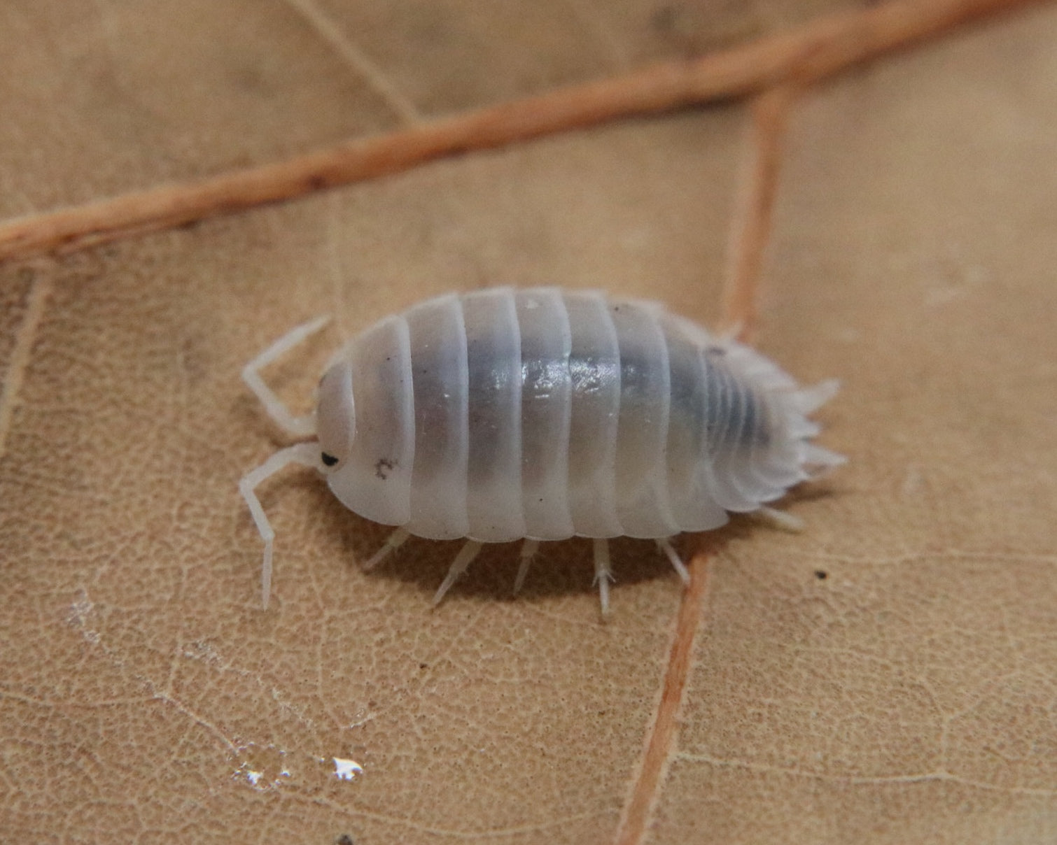 Porcellio laevis "White" are a very cool laevis to work with. We do not recommend adding laevis into enclosures with soft-bodied, small, or young animals. They are native to North Africa, but also Europe. These are prized for their almost all white appearance. These isopods have a hard, calcified body. Our isopods are fed Iso-licious Isopod Food 1-2x a week, including our new wet mixes, supplemented with potatoes, squash, carrots, our leaf powder, and a cuttlebone. These isopods enjoy warm temperatures and an occasional misting, but do not do as well in a wet environment. We allow space for a extensive moisture gradient, starting with one side of the enclosure having moist NZ sphagnum moss, the middle being mostly dry and covered with leaf litter and bark, and onto the opposite side being bone dry and covered only with leaf litter. This provides the needed space for Isopods to osmoregulate to remain in homeostasis. These are semi-arid species and require ventilation for optimal health.