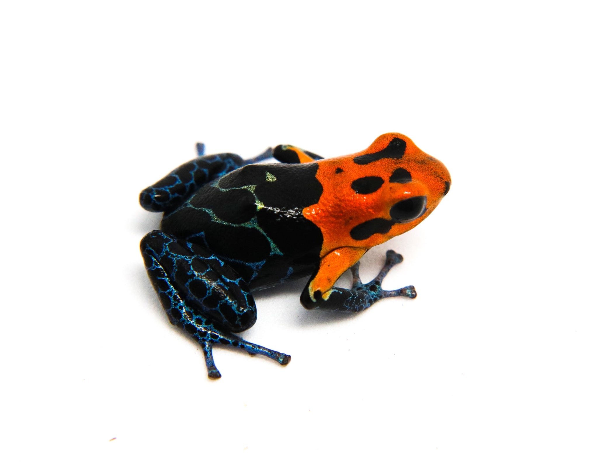 Ranitomeya fantastica "Varadero" is a semi-terrestrial species that inhabits the lowlands near Yurimaguas into the slopes in Peru. They do decently in groups, but males can get aggressive. R. fantastica usually lay 3 to 6 eggs in leaf litter, horizontal film canisters, or bromeliads. Tadpoles can be pulled or left to be raised by adults, but may cannibalize if left with other tadpoles in proximity with less-than-adequate food. Egg eating may occur from rival females, and wrestling will often occur between same-sex frogs. No more than a pair should go in a 10 gallon tank or a 12 x 12 x 18 ExoTerra tank, but we recommend larger enclosures due to their speed. Please contact us with further questions.