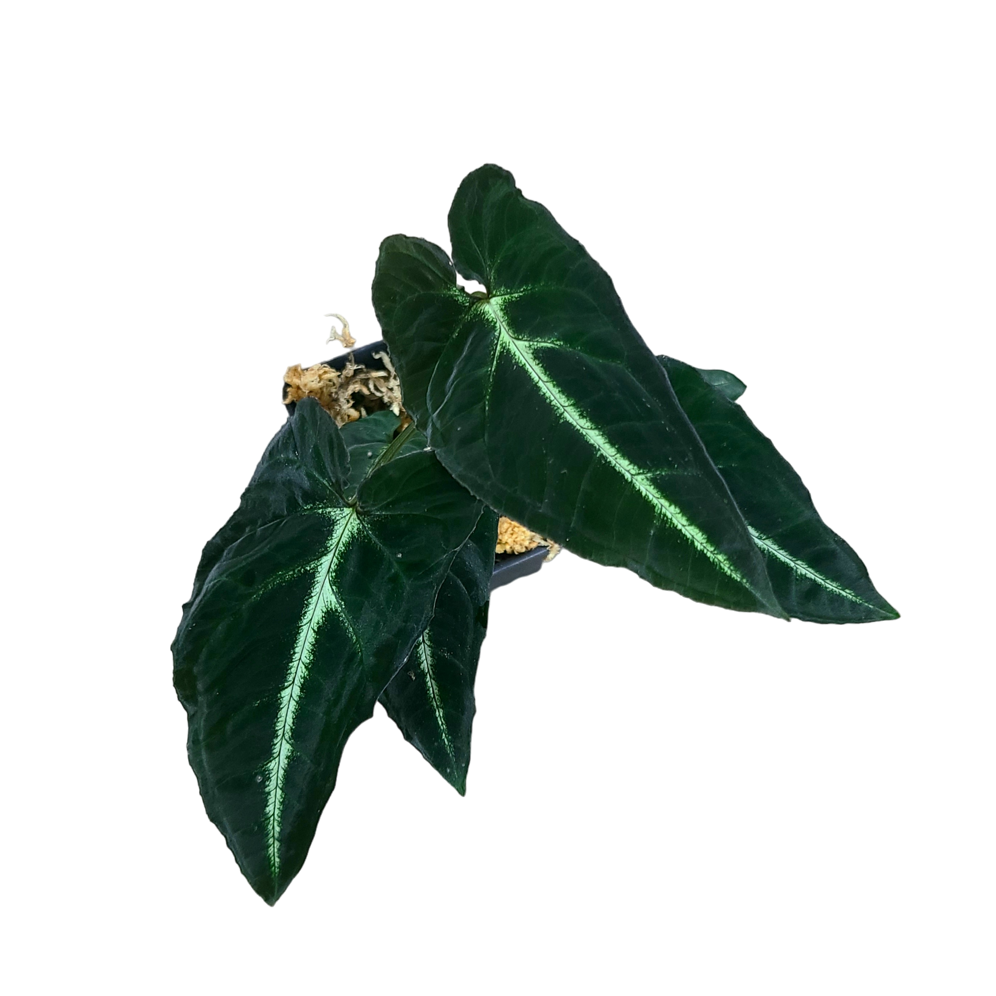 Syngonium rayii is an arrowhead vine native to Costa Rica. It has very dark green leaves with and streak of pure white down the mid vein. It is very popular amongst vivarium enthusiasts. It does well in bright, indirect light and moderate to high humidity, but appreciates airflow. Moist soil and sphagnum moss are helpful for rooting this species.