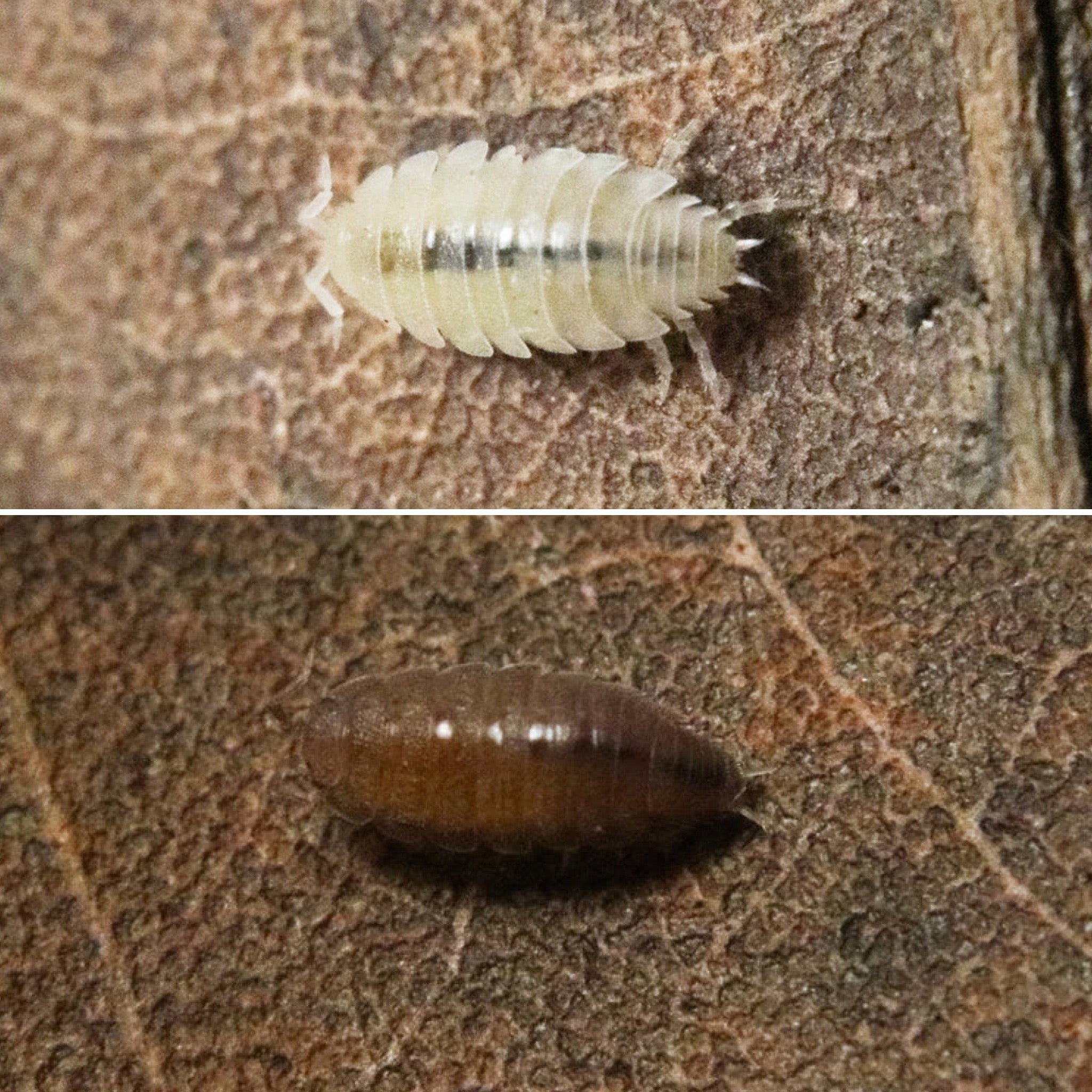 Trichoniscidae mix containing both dwarf white and dwarf purple. They establish quickly in a vivarium, and will act as janitors to keep the vivarium clean, as well as a snack that provides a natural calcium boost. They are native to Costa Rica. Our isopods are fed Iso-licious Isopod Food 1-2x a week, including our new wet mixes, supplemented with potatoes, squash, carrots, our leaf powder, and really enjoy banana peels as their number one source of food. These isopods enjoy warm temperatures and a damp environment. We use a deep, natural substrate with them and leaf litter.